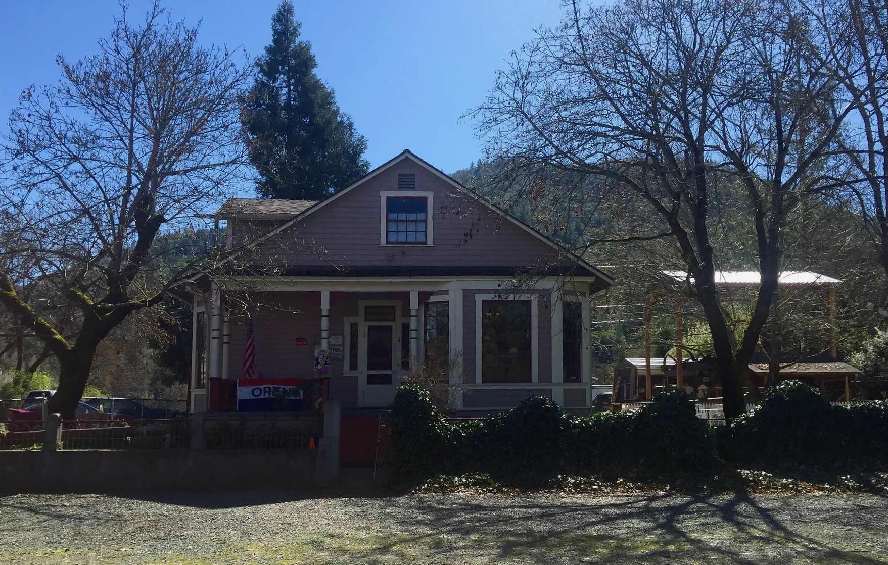 Gold Hill Historical Society Museum is housed in the Beeman-Martin home which was built by Mr. Beeman in 1901 with wealth from his “Lucky Bart” gold mine on Sardine Creek. The Society bought the building in 1993 and now have a fully restored kitchen, a collection of mining equipment and many important artifacts documenting Gold Hill's colorful past. A stamp mill built in 1892 on the Beeman Gold Mine has been reconstructed and is the focal point of an outdoor mining exhibit. In 1999, Jackson County deeded the Galls-Hays Cemetery on Hodson Road to the Society. First it was owned by the Jacob Gall family, then the Hays family. Some accounts state the first burial was a cattle drover around 1837.