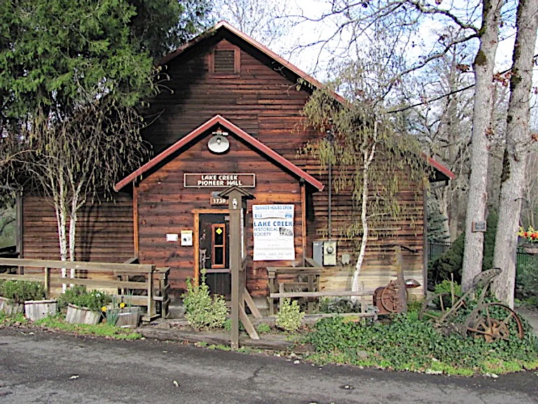 The Lake Creek Historical Society was established in 1990. It is a dynamic and active organization committed to bringing local history to life and to recording Lake Creek's past and that of its residents. Beginning with the restoration of the Lake Creek Pioneer Hall, the Charley Cabin, and the Lost Creek Covered Bridge (Southern Oregon's oldest and smallest); Lake Creek Historical Society has been a consistent energetic element of this rural community. Situated across from the store and ice cream parlor, the rustic Pioneer Hall is perfect for weddings, meetings, and events. It comes with lovely shade trees, pastoral creek and bandstand.