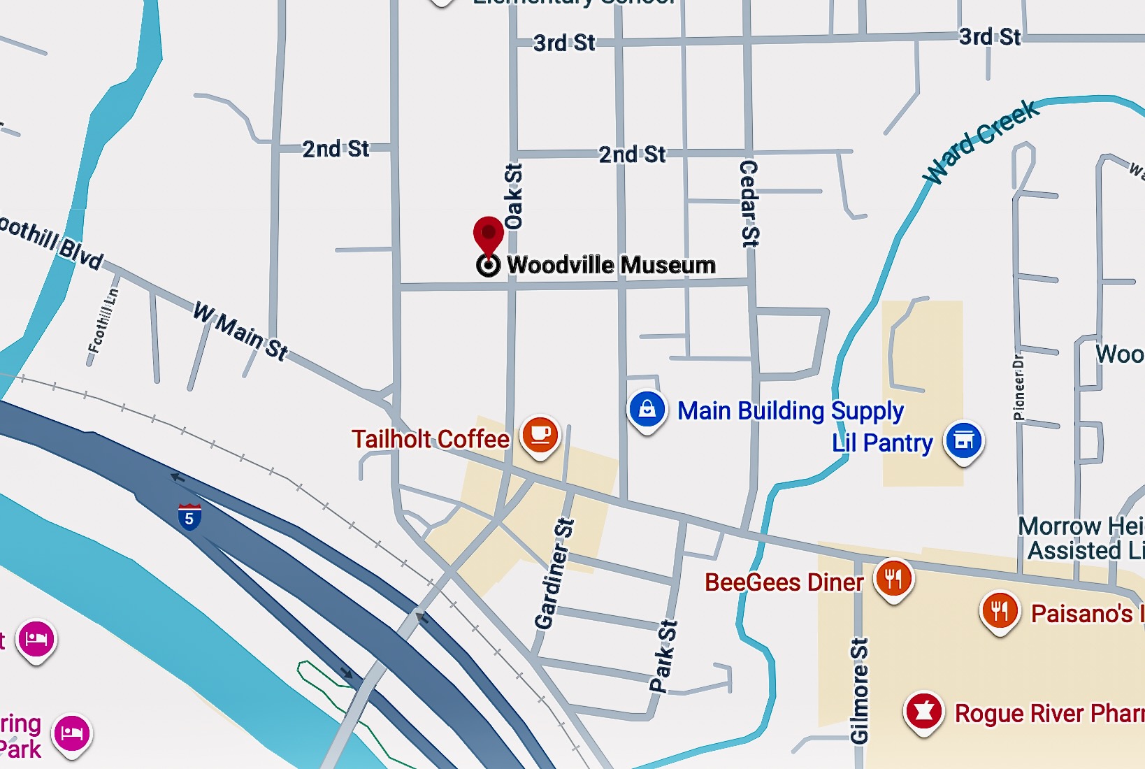 The Woodville Museum, housed in the Hatch House, is located on the corner of First and Oak Streets in the city of Rogue River (formerly Woodville). The turn of the century home displays items that the pioneers used. The household furnishings and tools span one hundred fifty years. Long time residents organized to form the Museum in 1986, and then opened in 1987. Much of the initial funding came